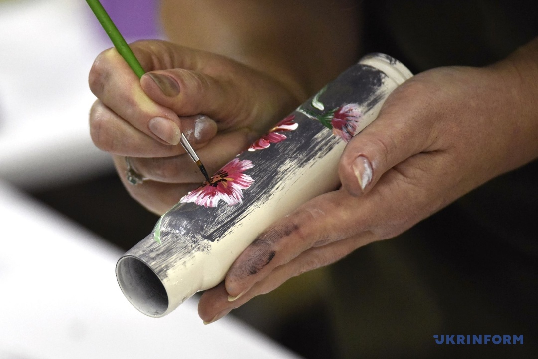 Жінка розписує гільзу під час благодійного майстер-класу з розписування гільз "Арт з гільз", Вінниця, 12 листопада 2024 року.