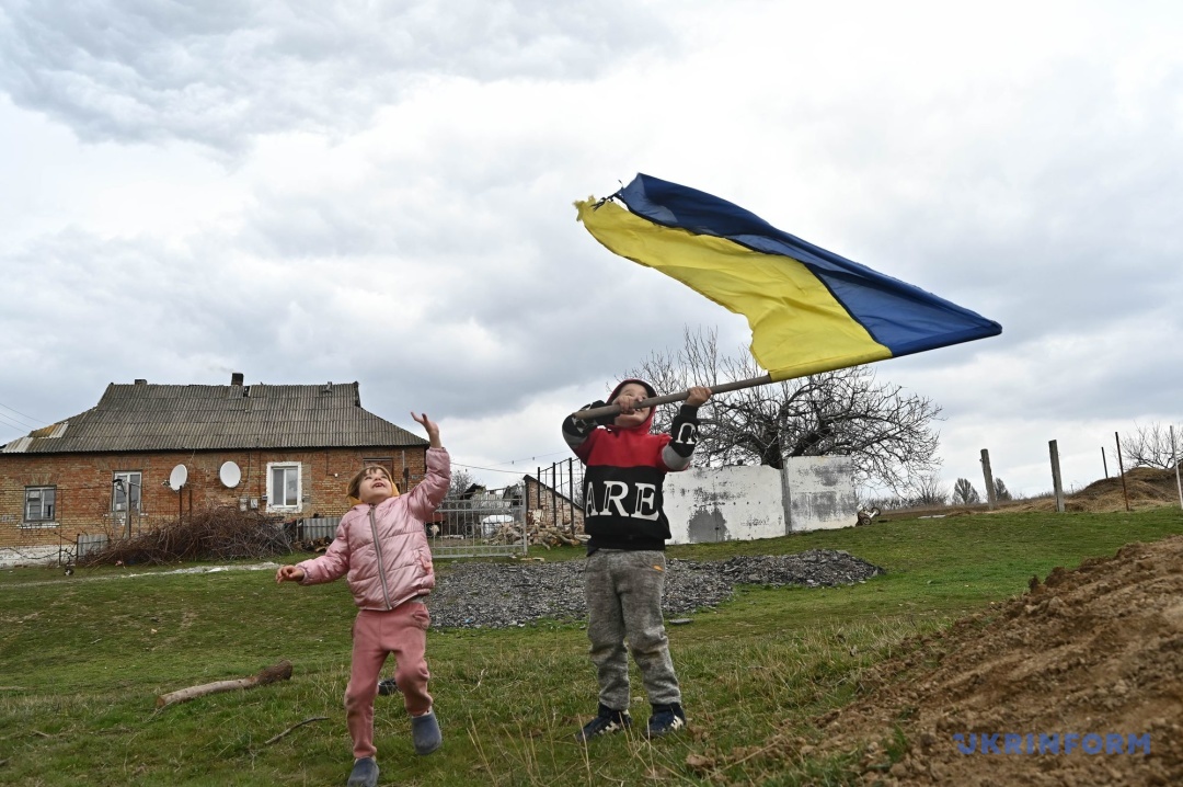 Діти з прапором України, село Приморське, Запорізька область, 20 березня 2024 року.