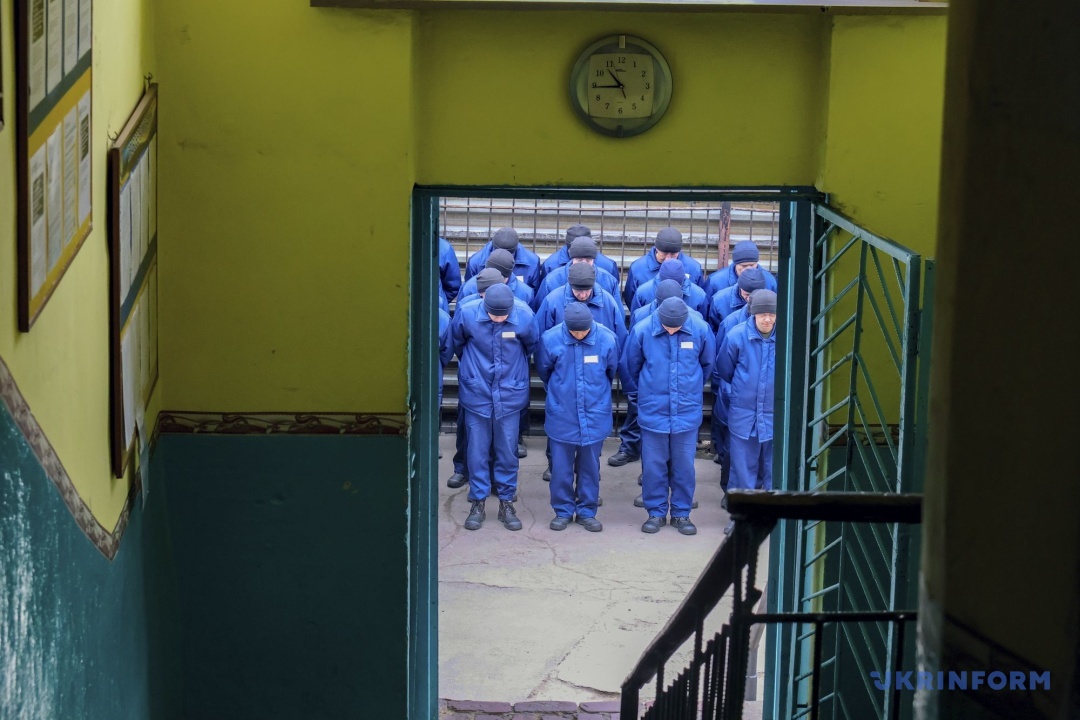 Російські військовополонені під час шикування перед бараком на території табору, 7 березня 2024 року.