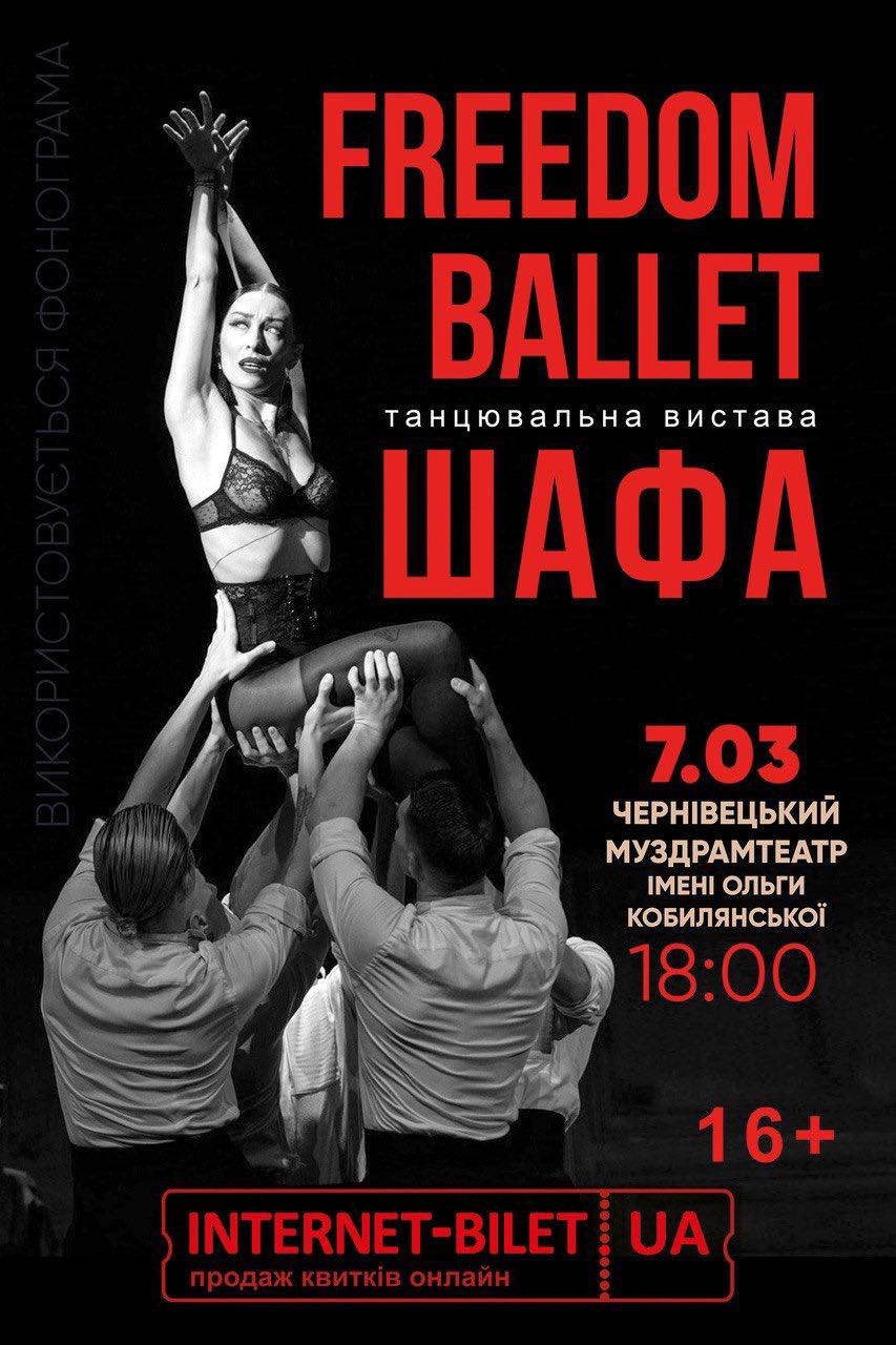 7 березня о 18:00 у Чернівецькому академічному облмуздрамтеатрі імені Ольги Кобилянської відбудеться повторний показ перформансу «Шафа» від балету «Freedom».