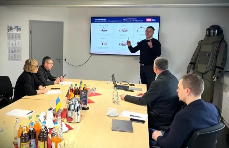 У відомстві поінформували, що представники Міноборони України відвідали у Німеччині виробничі потужності швейцарсько-німецького підприємства Global Clearance Solutions, яке займається розробкою та випробуваннями машин розмінування GCS. Візит відбувся на запрошення керівництва української філії цієї компанії.