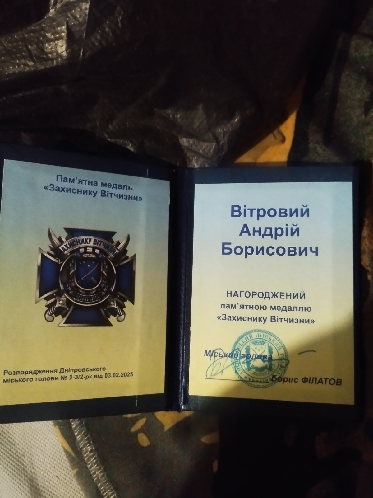 Андрій Вітровий виконував і, попри поранення, продовжує виконувати бойові завдання на найскладніших напрямках фронту, демонструючи незламність і відданість обов’язку.