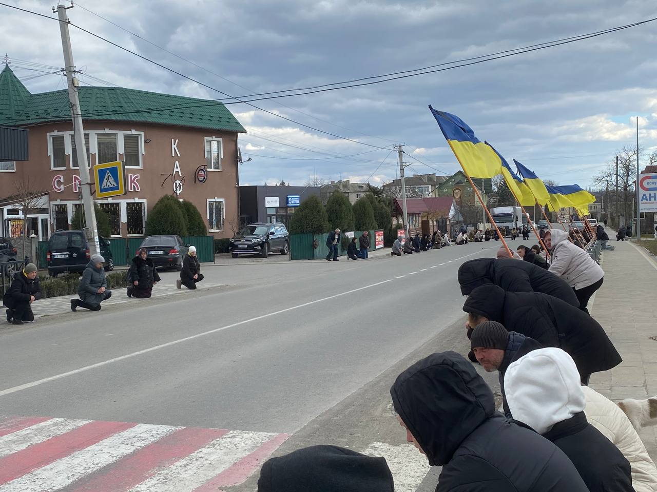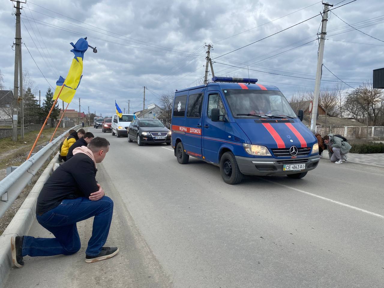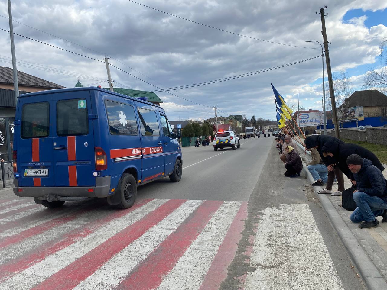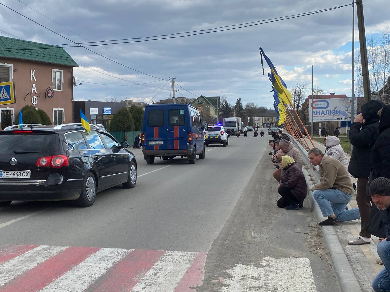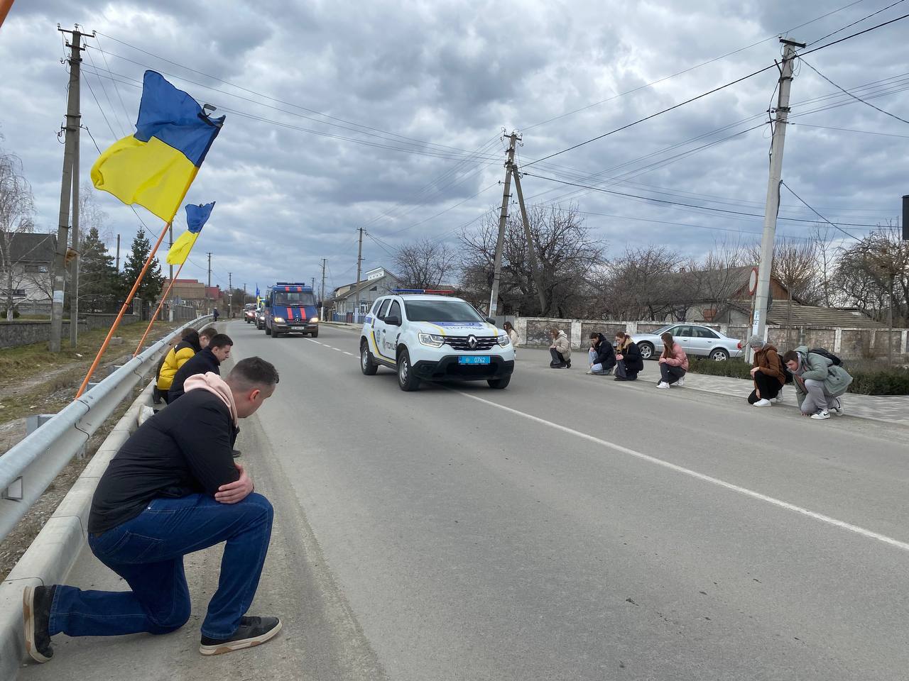 Жителі краю на колінах – «живим коридором», віддали шану вірному Герою, низько схиляючи голови в глибокій скорботі перед світлою пам’яттю загиблого.