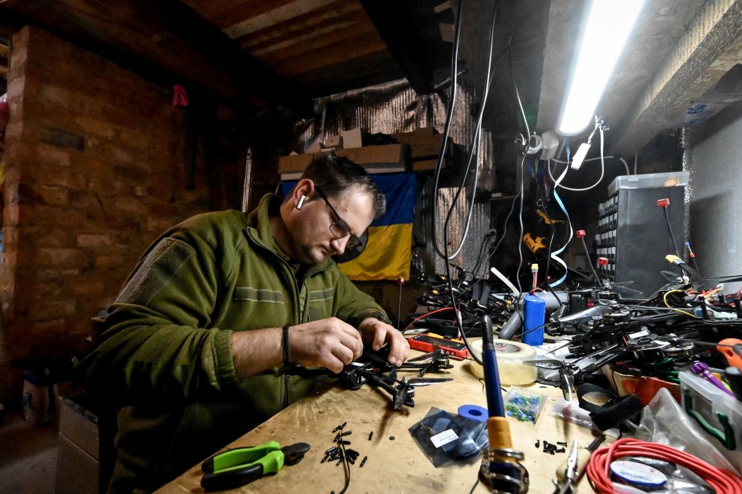 Бійці роти ударних безпілотних авіаційних комплексів «РУБАК» 118 ОМБр налаштовують FPV-дрони на свої потреби, квітень 2024 року. Фото Укрінформ