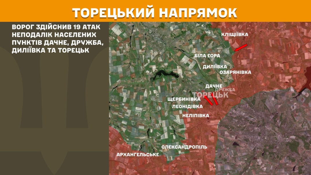 На Торецькому напрямку ворог здійснив 19 атак неподалік Дачного, Дружби, Диліївки і Торецька.