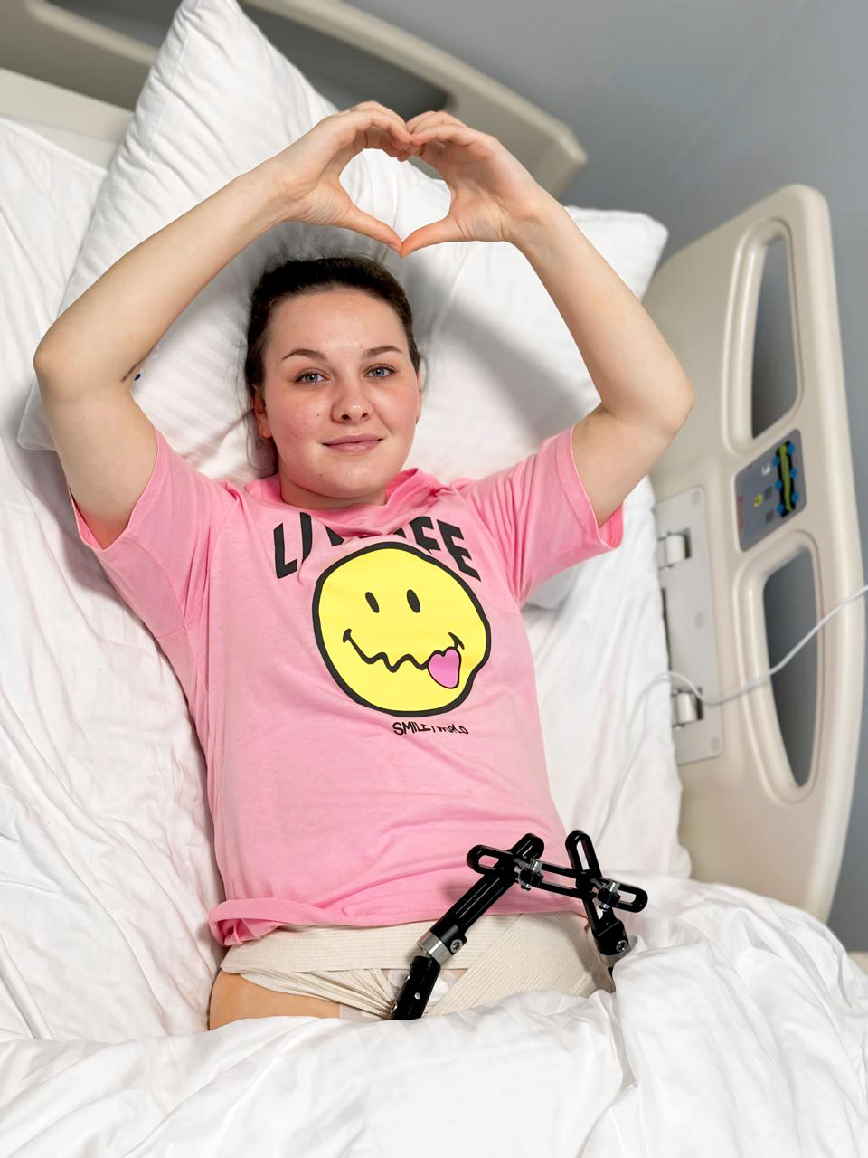 – Про те, що у мене зламані рука і таз, я дізналася тільки в лікарні, – згадує той день Вікторія. – На нозі був відкритий перелом, вона почала дуже боліти, то я прив’язала до неї штахетину, щоб якоїсь закріпити. Я тоді не думала про себе. Весь час накладала турнікети та бандажі собі й лікарю, а ще повзала, кричала з надією, що нас помітять з автомобіля або дрона, а далі евакуюють. Обстріли тоді майже не припинялися. Найбільший мій страх був за маму. Я хвилювалася, як вона переживе, якщо помру. А якщо виживу, то як мама відреагує, коли мене побачить. Я втратила багато крові, і в якийсь момент було відчуття, що вже помираю.