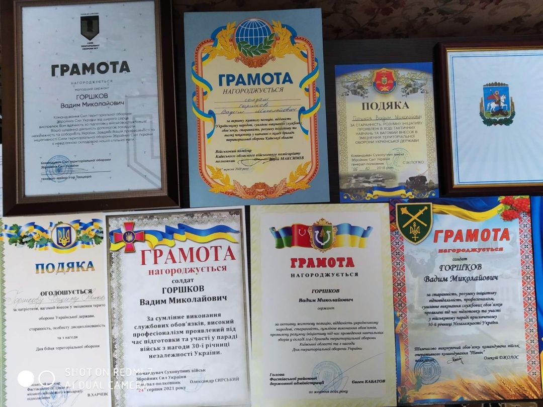 За життя Вадим Горшков отримав безліч відзнак за професіоналізм та сумлінне виконання службових обов’язків. Він передавав знання, які рятують життя українських захисників.
