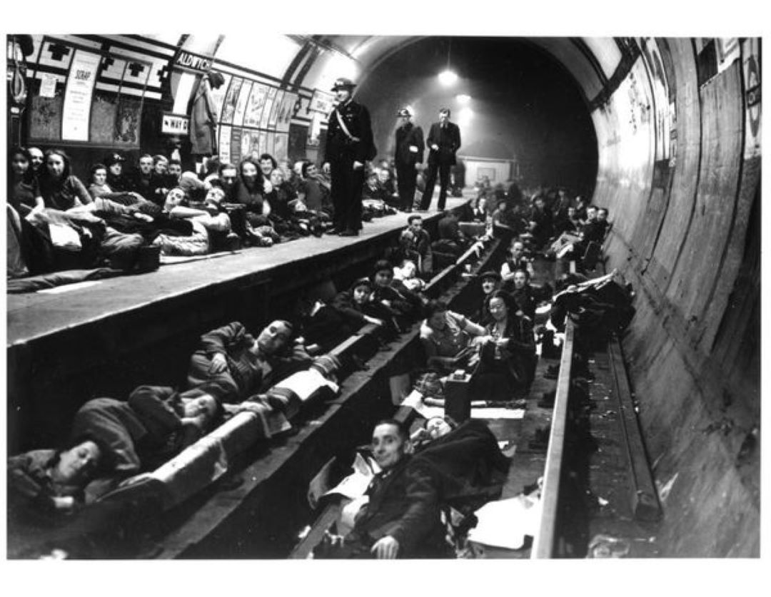 Близько 150 тис. лондонців щоночі переховувалися в міському метрополітені. 1940 рік