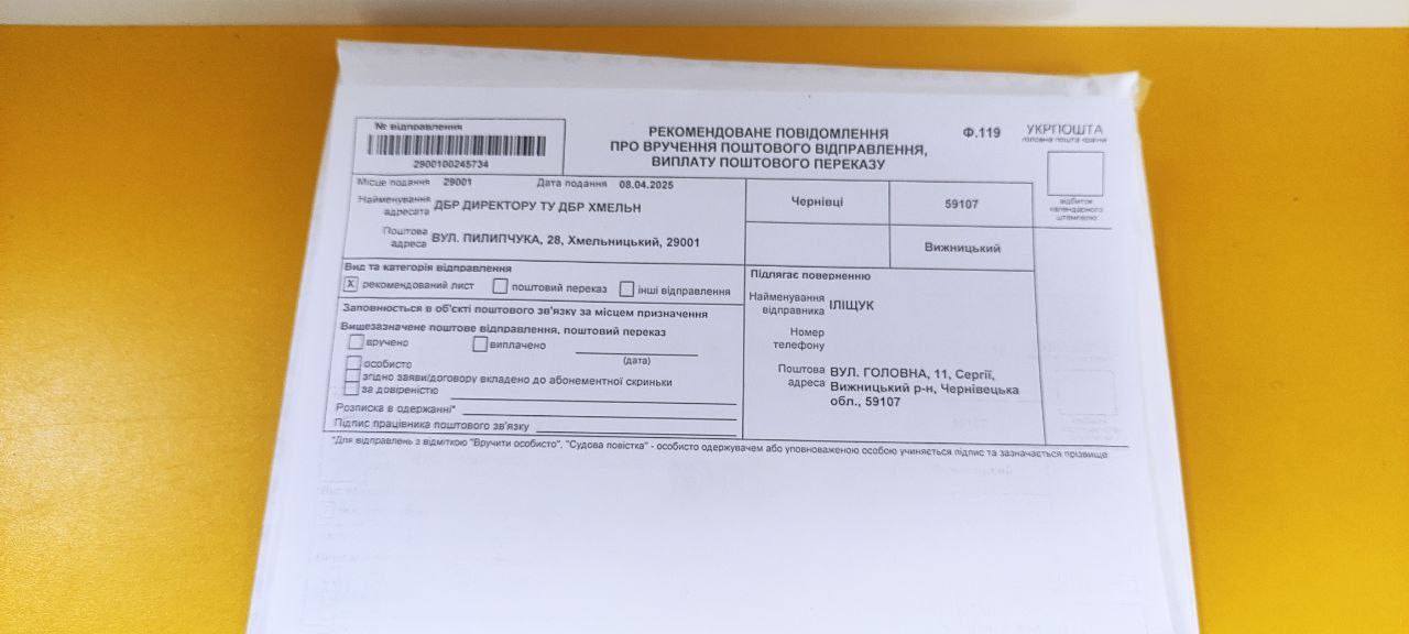 «З метою захисту себе та своїх рідних змушений був звернутись до Державного бюро розслідувань із повідомленням щодо тиску та впливу на мене як депутата обласної ради з боку голови партії та голови ОВА Запаранюка Р. В., з наданням відповідних письмових та аудіо доказів», — написав депутат Чернівецької облради у своєму фейсбуці.