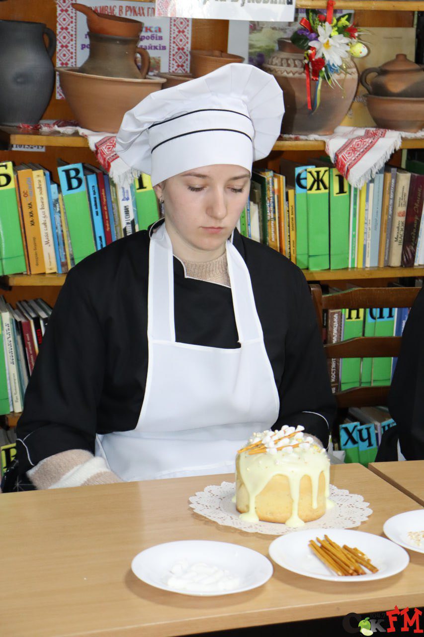 Своє вміння оздоблювати великодні паски передали здобувачі освіти гр.. №54, ІІ курсу (кухарі-кондитери): Вероніка Бурлачук, Анастасія Гонца, Анна Паращук, Марина Логодзінська, Віталіна Чорна разом із їхнім професійним наставником – майстром виробничого навчання Валентиною Петрівною Кушнір, яка досконало володіє навичками кухарської справи і чого вміло навчає своїх учнів по спеціальності «Кухар-кондитер».