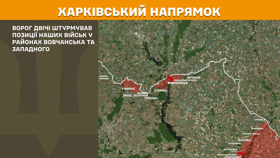 На Харківському напрямку війська РФ двічі штурмували позиції українських військ у районах Вовчанська та Западного.
