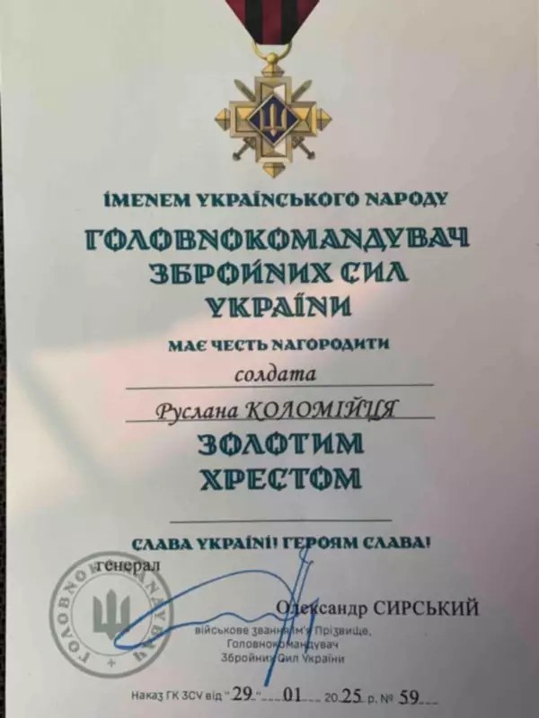 «Золотий хрест» від Головнокомандувача ЗСУ – для вихідця із Сокирянської громади Руслана Коломійця