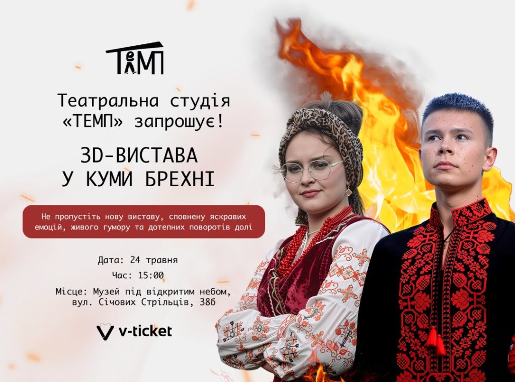 24 травня о 15:00 у Чернівецькому музеї просто неба (вул. Січових Стрільців, 38б) відбудеться вистава «У куми Брехні» від театральної студії «Темп».