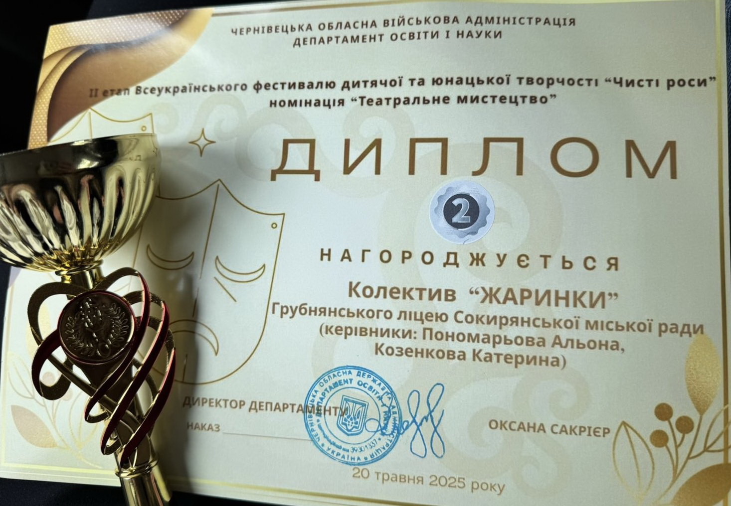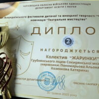 З гордістю повідомляємо: театральний колектив «Жаринки» Грубнянського ліцею (старша вікова категорія) здобув почесне ІІ місце!