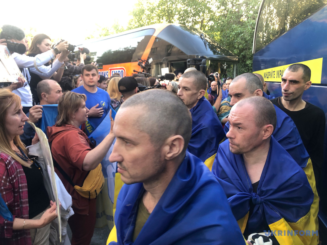– Морська піхота є? – хтось відчайдушно кричить із натовпу, але зараз їм не відповідають. Бліді й худі, мов тіні, хлопці під вигуки «Вітаємо вдома!» виходять з автобуса, схоже, ще не зовсім вірячи у те, що вони вже на рідній землі.