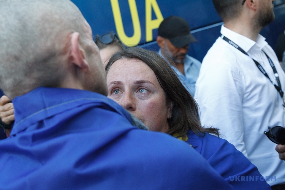 Діалоги затихають, бо всі, хто зустрічав полонених, починають голосно скандувати «Дякуємо, дякуємо!».