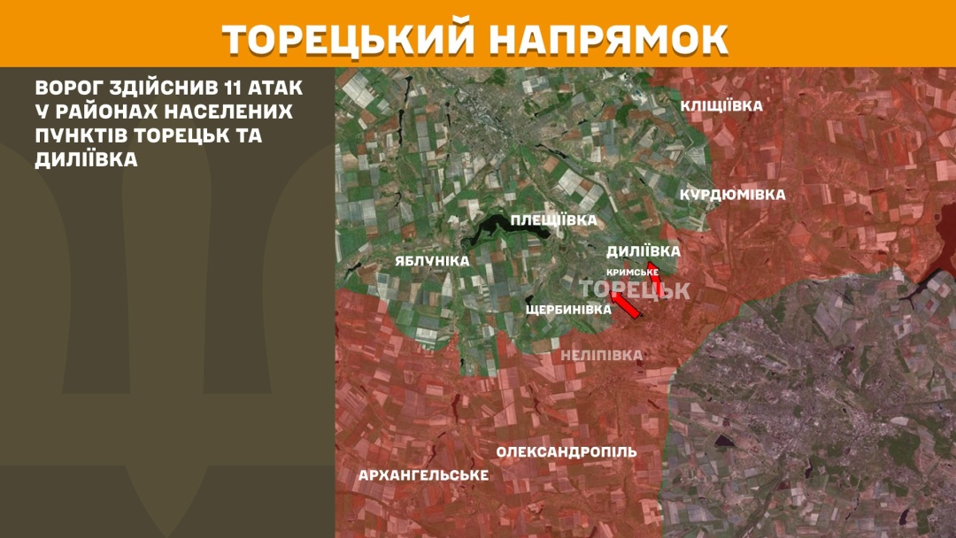 На Торецькому напрямку ворог здійснив 11 атак у районах населених пунктів Торецьк та Диліївка.
