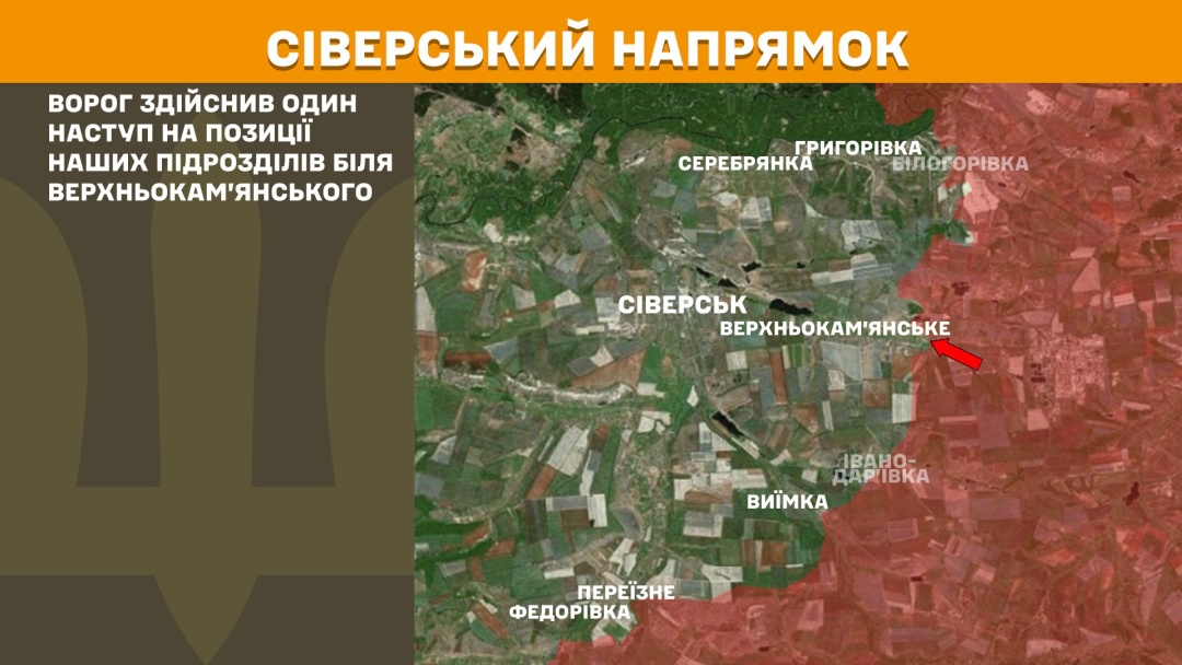 На Сіверському напрямку війська РФ здійснили один наступ на позиції українських підрозділів біля Верхньокам’янського.