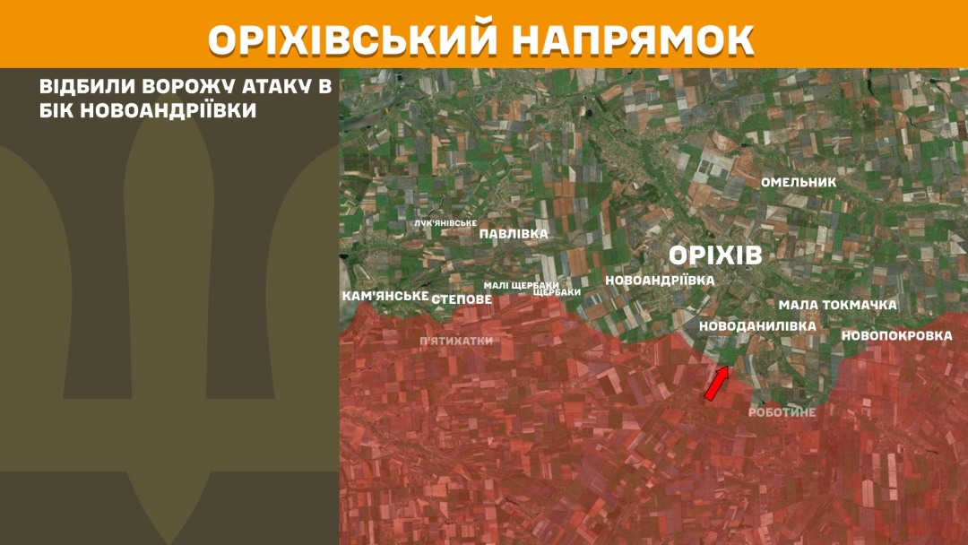 На Оріхівському напрямку українські оборонці успішно відбили ворожу атаку в бік Новоандріївки.