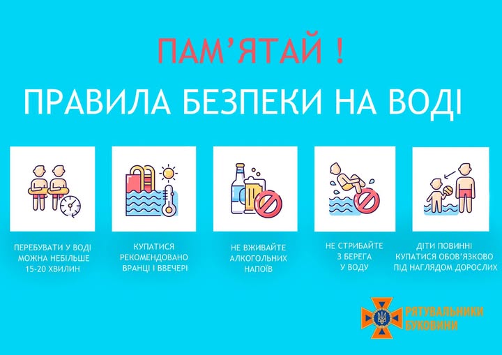 Відпочинок на воді традиційно є одним із найулюбленіших для громадян у спекотні літні дні. Проте, щоб він був безпечним, під час перебування на водоймах варто пам’ятати про основні правила поведінки: