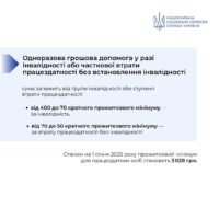 Розмір одноразової грошової допомоги у разі встановлення інвалідності або часткової втрати працездатності визначається від ступеня такої втрати, що фіксується у відсотках або групою інвалідності.