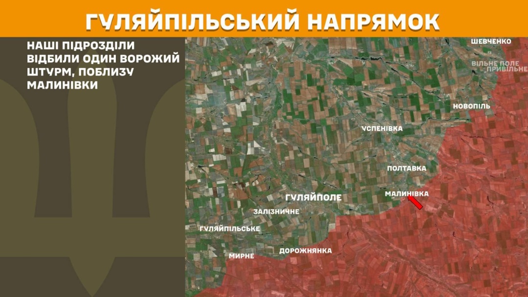 На Гуляйпільському напрямку Сили оборони відбили штурм поблизу Малинівки.