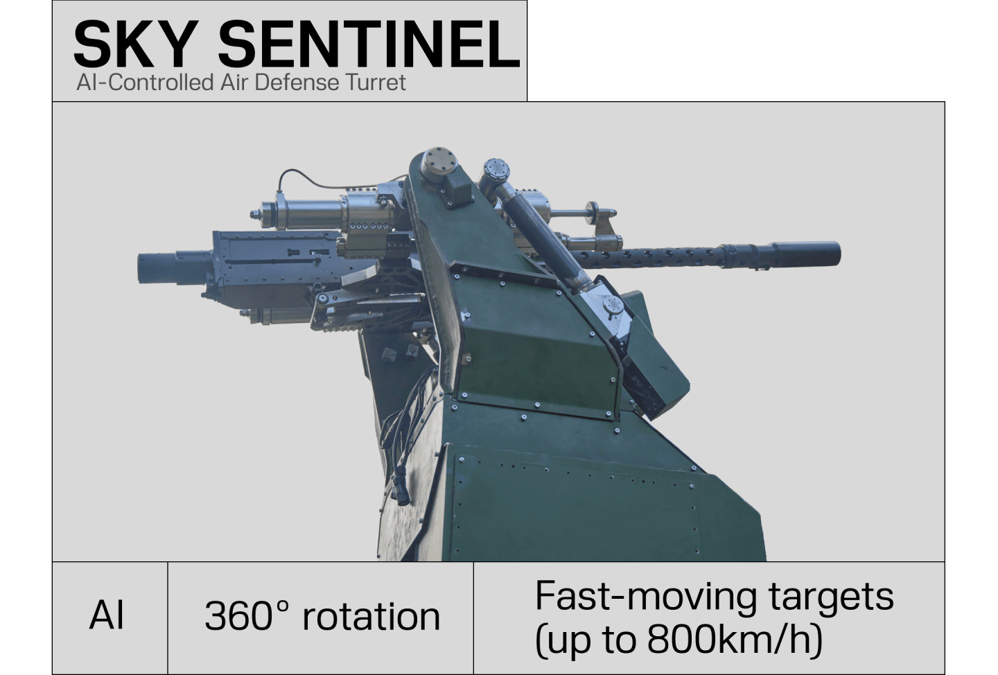 Це означає, що Sky Sentinel у режимі реального часу здатний виявити й розпізнати ворожий безпілотник, розрахувати його швидкість, похибку на опір вітру, передбачити точку зіткнення кулі (снаряда) з ціллю й відкрити вогонь на ураження. Водночас заявлено, що модуль може ефективно працювати по дронах та інших повітряних об’єктах, які рухаються зі швидкістю до 800 км/год.