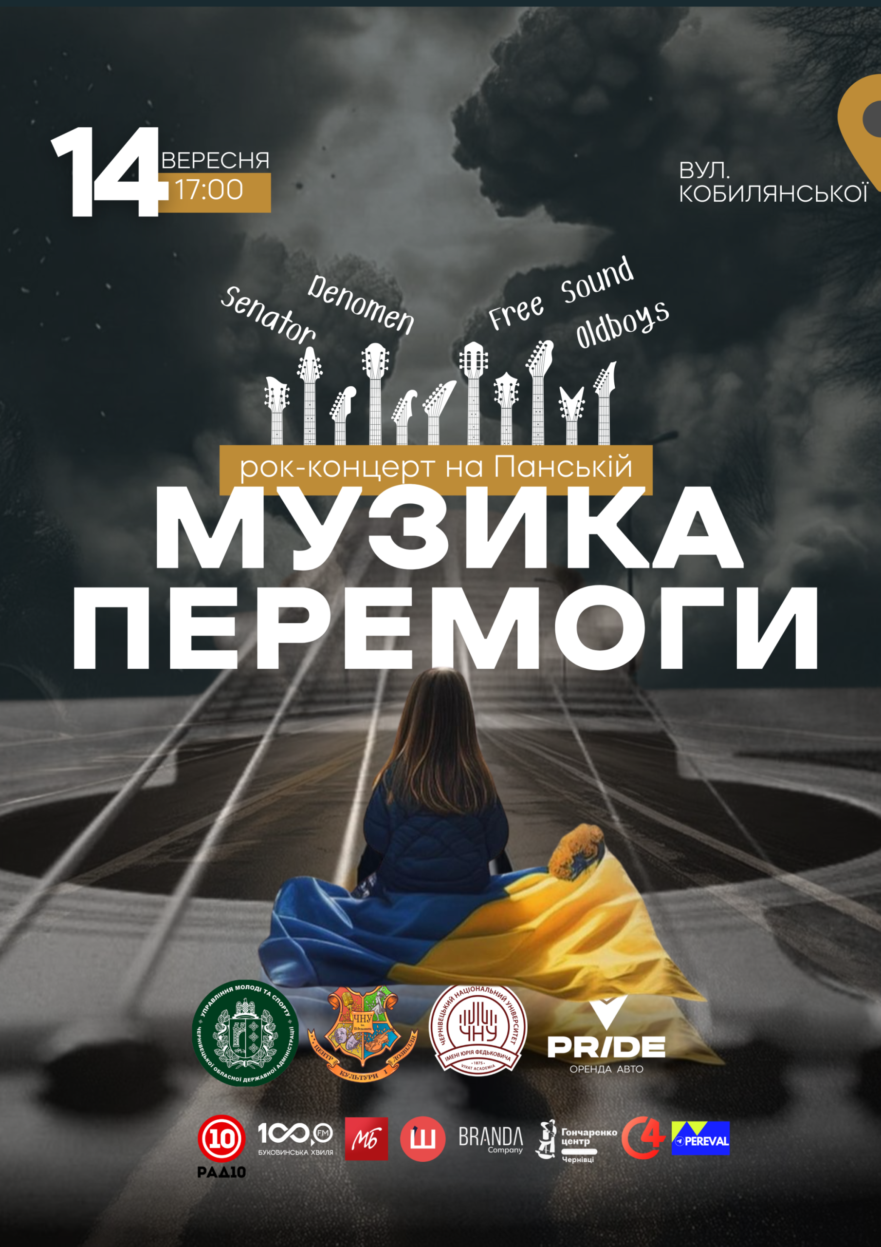 У неділю, 14 вересня, на вулиці Ольги Кобилянської у Чернівцях відбудеться благодійний рок-концерт «Музика перемоги». Початок о 17:00.