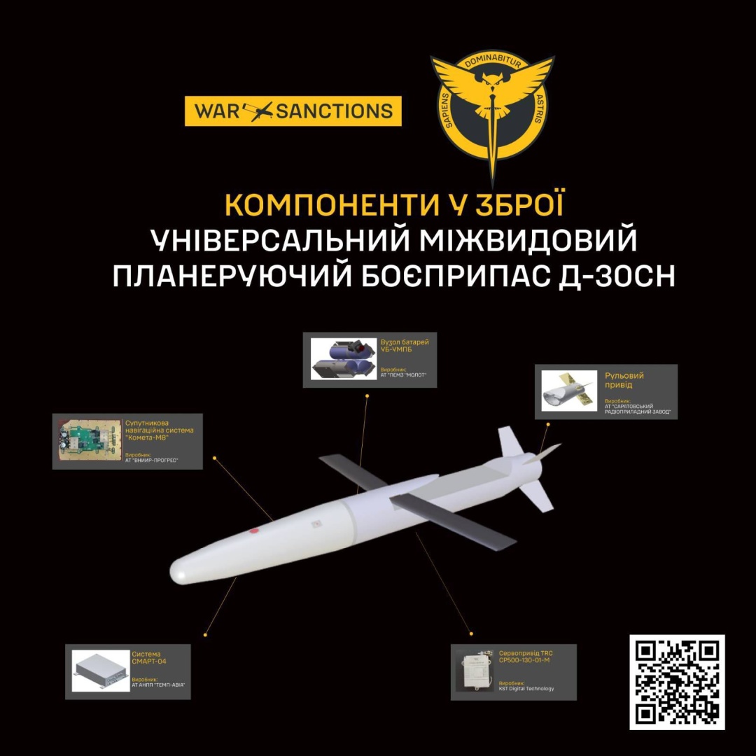 Головне управлінння розвідки Міноборони України у розділі «Компоненти у зброї» порталу War&Sanctions опублікувало будову універсального міжвидового планеруючого боєприпасу УМБП Д-30СН, а також дані 36 підприємств, які входять до його виробничої кооперації.