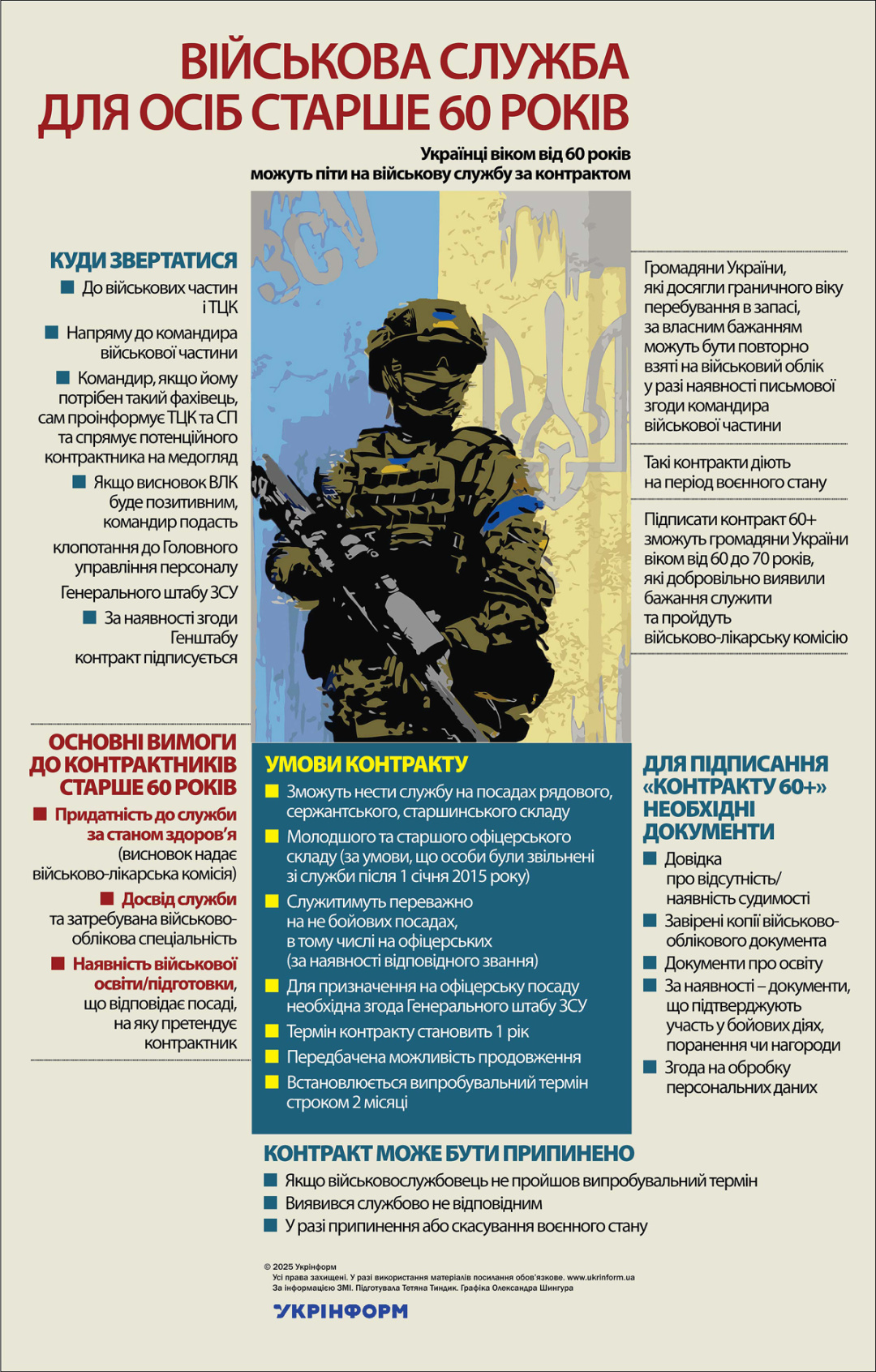 Українці віком від 60 років можуть піти на військову службу за контрактом