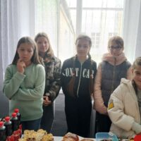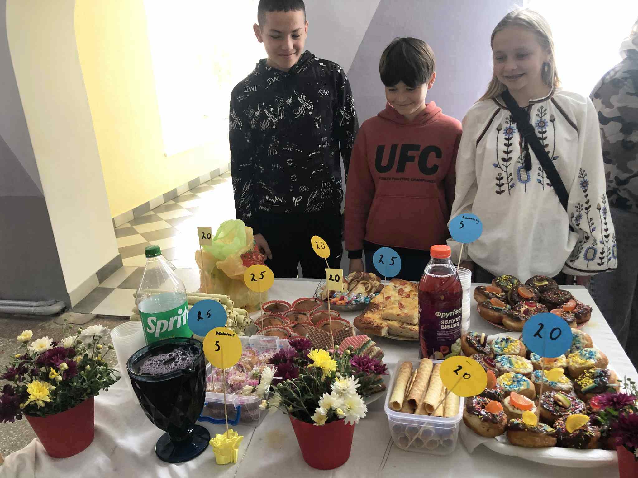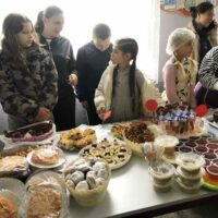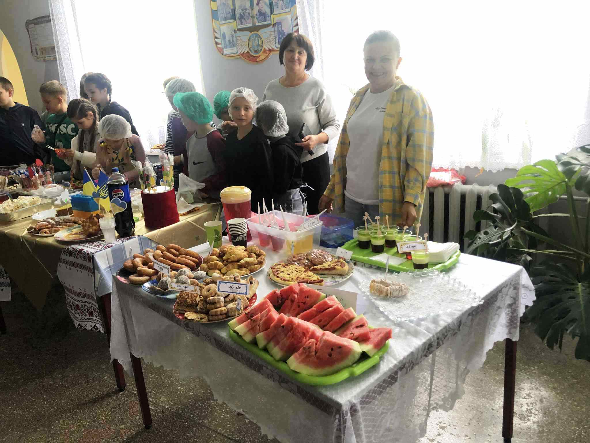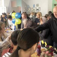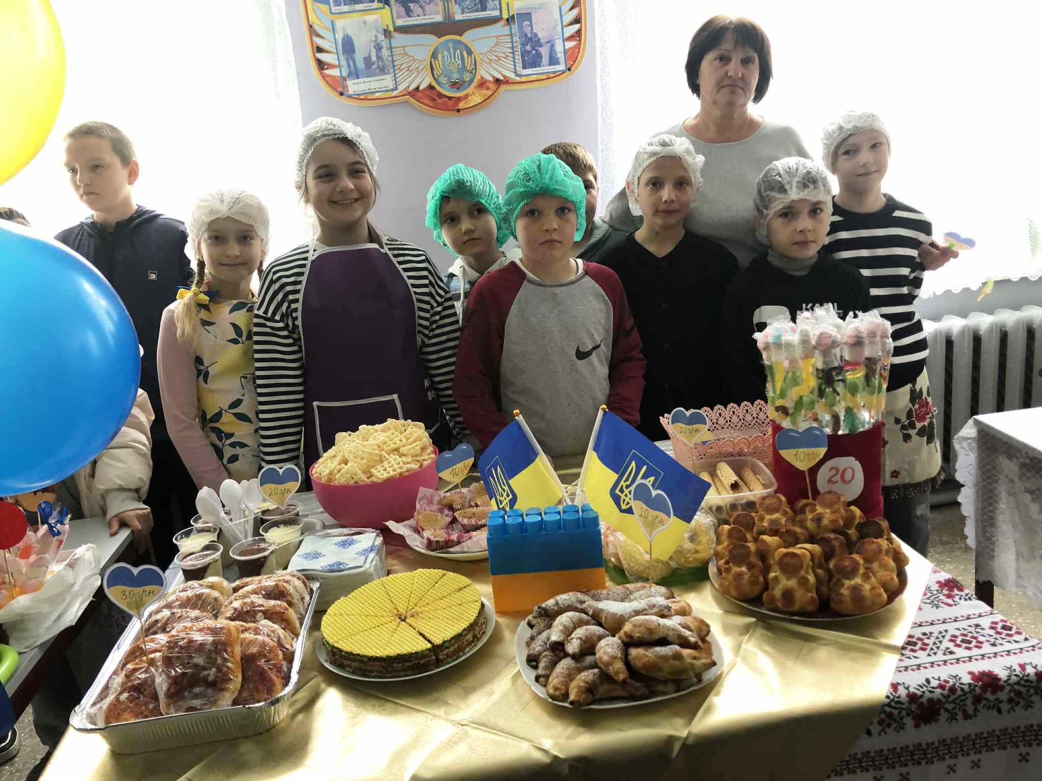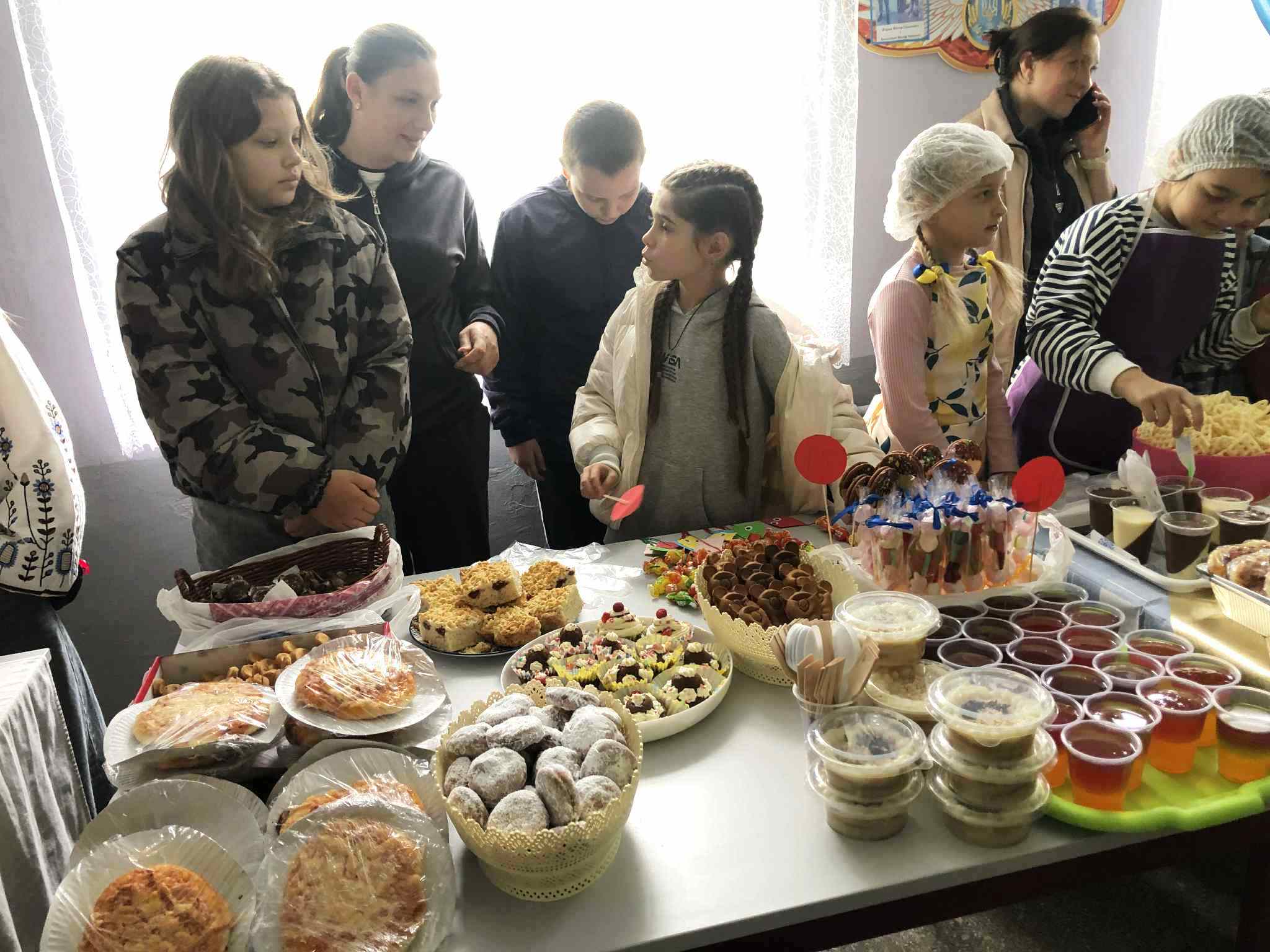 У приміщенні гімназії, для відвідувачів ярмарку, класні колективи презентували різноманітні домашні смаколики. Також організували лотерею та благодійну фотосесію.