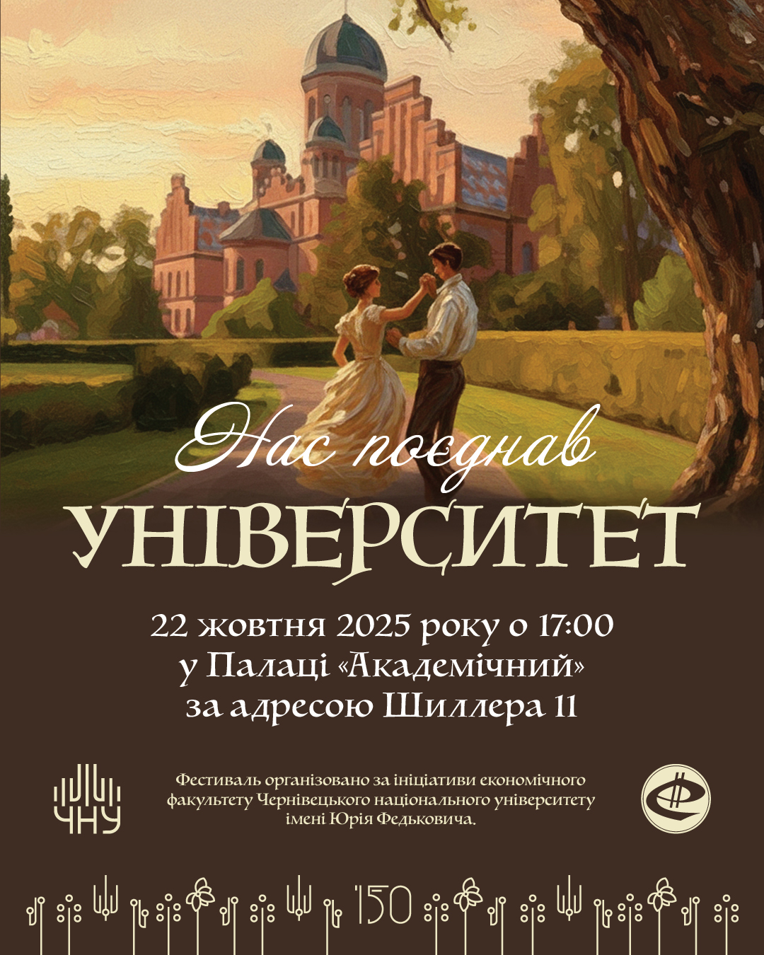 22 жовтня о 17:00 у Палаці «Академічний» відбудеться перший фестиваль «Нас поєднав університет», присвячений 150-річчю Чернівецького національного університету імені Юрія Федьковича.