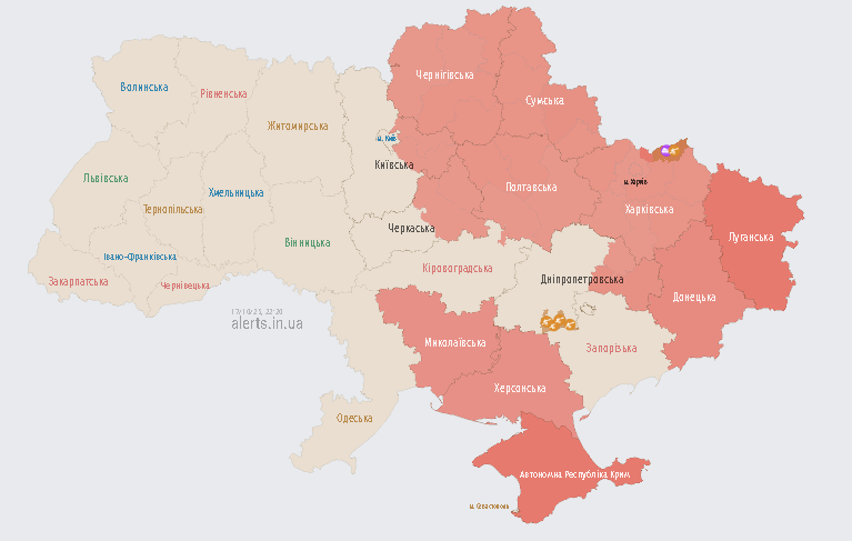 Також о 22:11 повітряну тривогу оголосили у низці областей.
