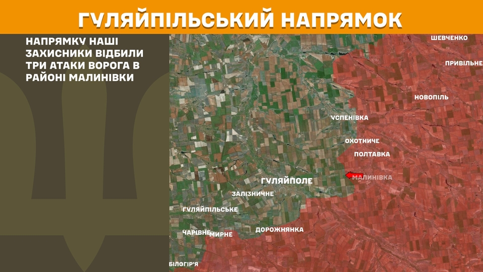 На Гуляйпільському напрямку наші захисники відбили три атаки ворога в районі Малинівки.