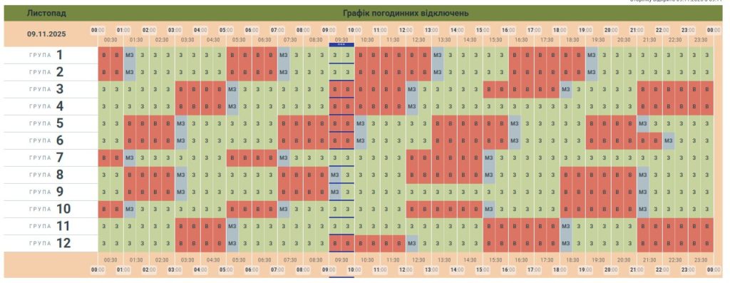 АТ «Чернівціобленерго» оприлюднило графік погодинних відключень електроенергії на сьогодні, 9 листопада.