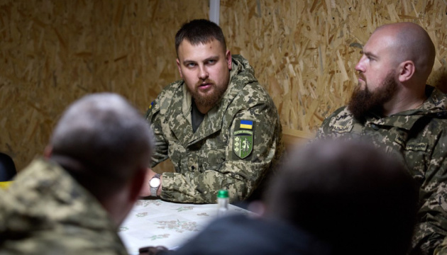 За його словами, під час зустрічі особливу увагу приділили бойовим діям на напрямку, активізації штурмових дій окупантів останнім часом, зокрема спробам ворога обійти наші оборонні споруди, використовуючи особливості місцевості. Окремо як повідомив Президент, йшлося про реалізацію програм із закупівлі дронів за власні кошти бригад і за електронні бали в межах програми «Армія дронів. Бонус», та особливості застосування дронів «Вампір».