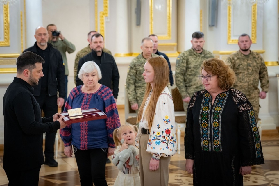 Як повідомляє Офіс президента, глава держави передав рідним загиблих захисників ордени «Золота Зірка». Звання Герой України удостоєні посмертно: