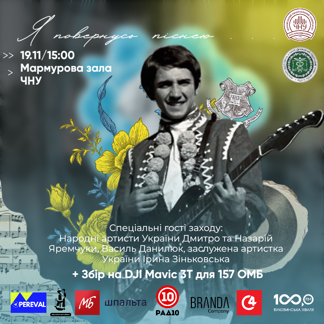 Концерт стане символом єднання поколінь — святом любові до української пісні та подяки митцю, чий голос і досі надихає. Вхід на захід — донат на DJI Mavic 3T для 157-ї окремої мотопіхотної бригади, тож мистецька ініціатива матиме й волонтерський вимір.