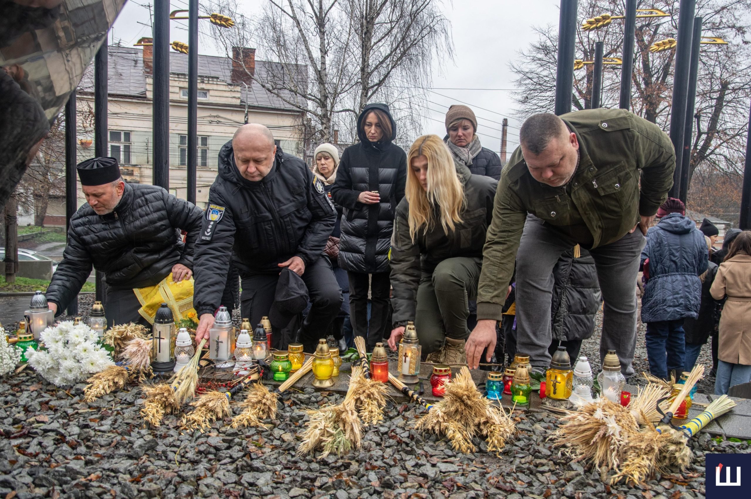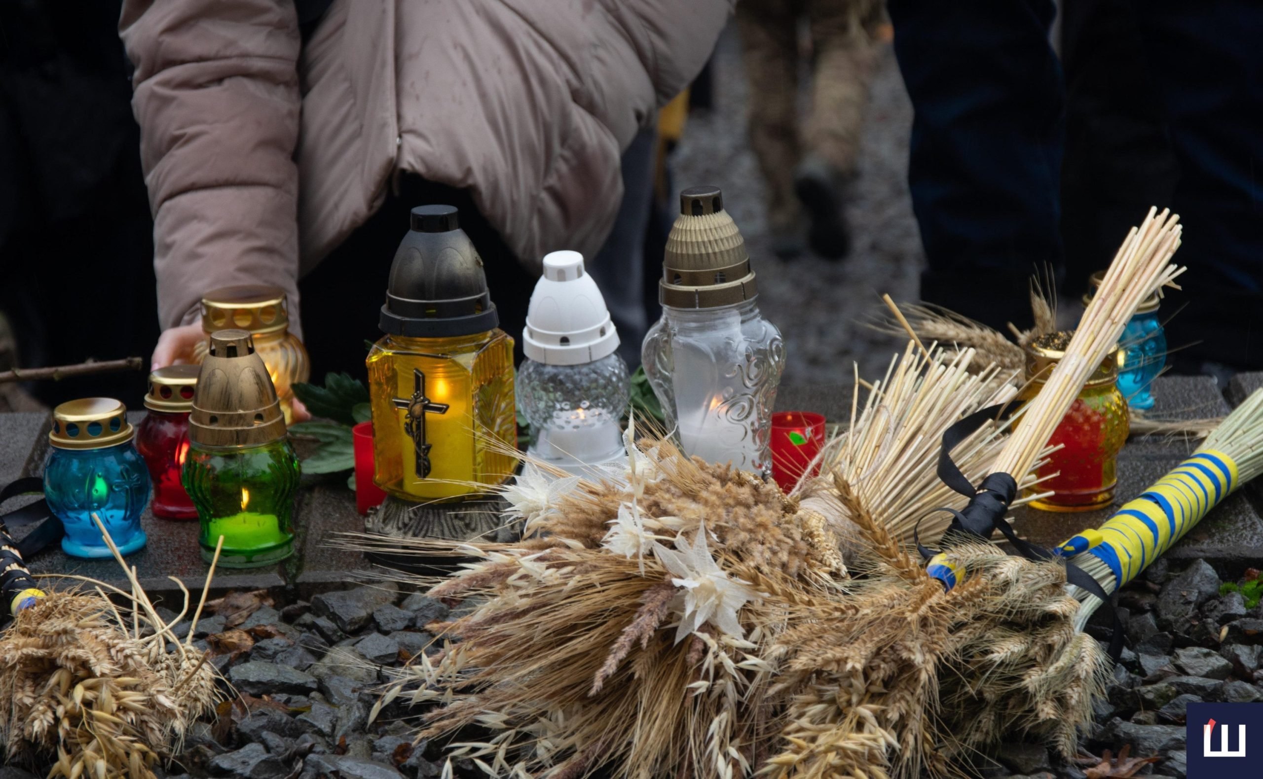 До пам’ятних місць у місті мешканці приносили лампадки, колоски пшениці та квіти — символи скорботи та незнищенності українського народу.