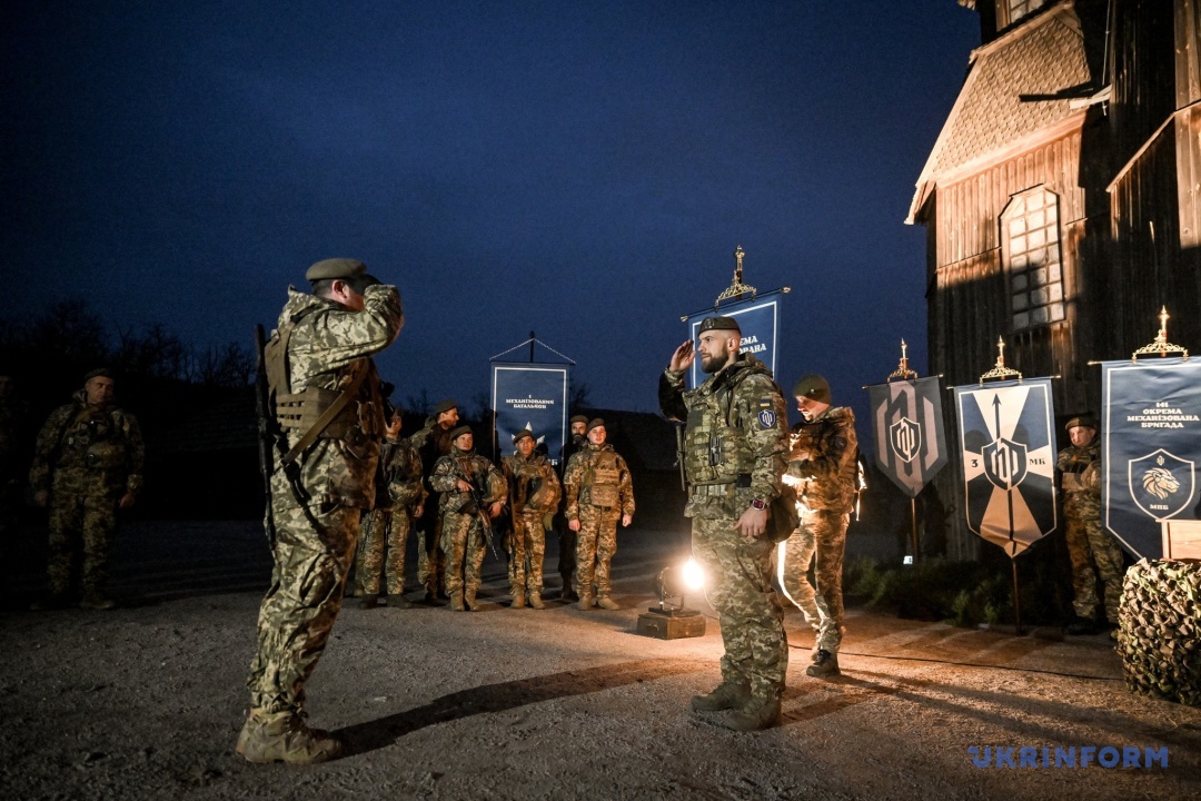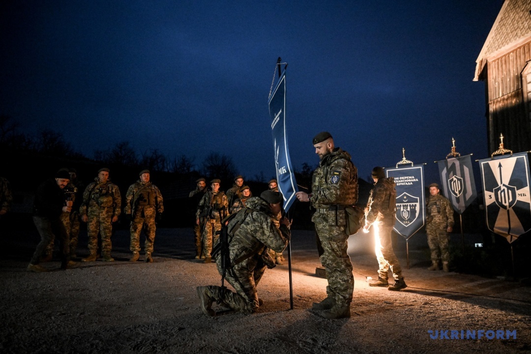 Задля безпеки всі деталі події розкривати не будемо. Обмежимося лише тим, що вручення хоругов і шевронів схоже на ритуал: із запаленням смолоскипів, шаною тим, хто загинув, та відзначенням гідних. Ті, хто бував у важких боях, у прямому сенсі бачив обличчя ворога та був за крок від смерті, кажуть, що бригадний шеврон – не просто наліпка на рукаві, це те, що заслуговується честю та відданістю.