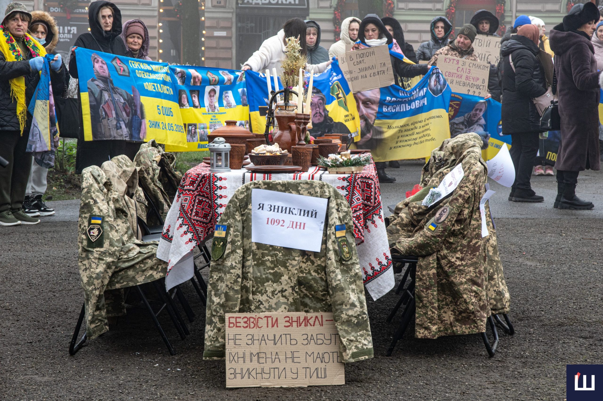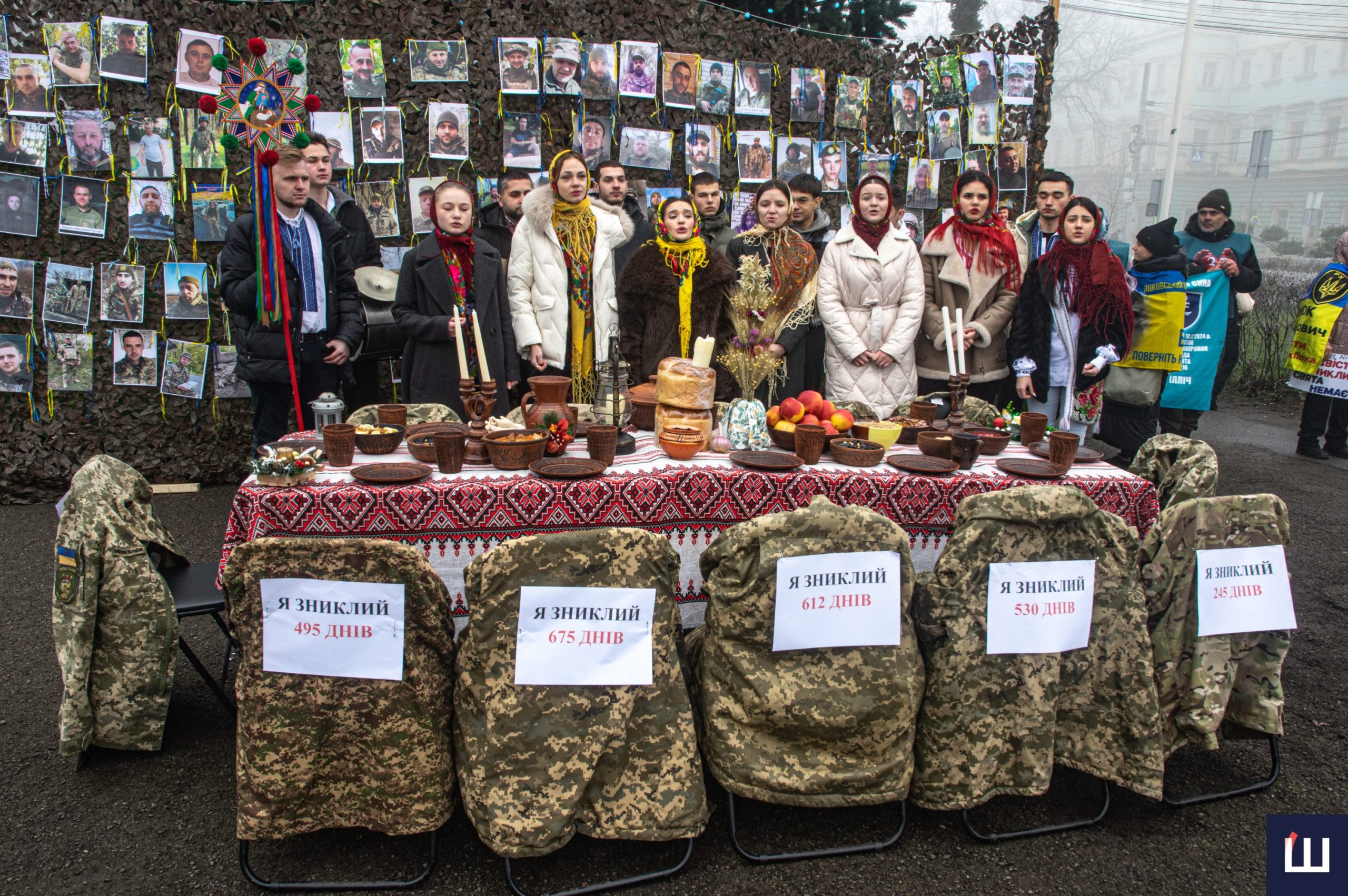 У центрі Чернівців цього дня тихо. Без гасел і сцен, але з різдвяною колядкою, свічками та символічним столом очікування — як нагадування про родин, які чекають своїх захисників із полону або досі не знають їхньої долі.