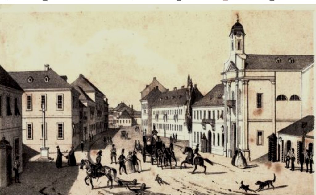Картина чернівецького художника Йозефа Шубірса (частина первісного урядового кварталу Чернівців), орієнтовно 1840 рік