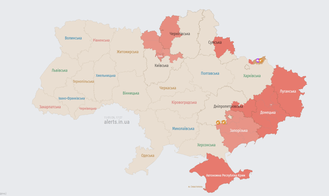 У Києві та ще кількох областях України була оголошена повітряна тривога.