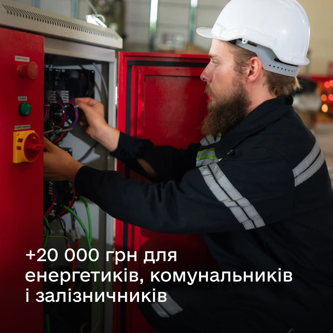 Держава запускає додаткову виплату у розмірі 20 тисяч гривень на місяць за січень, лютий та березень для працівників критичних підприємств. Це енергетики, працівники газової галузі, водопостачання та водовідведення, транспортної інфраструктури, які брали участь у ліквідації наслідків російських обстрілів та аварій.