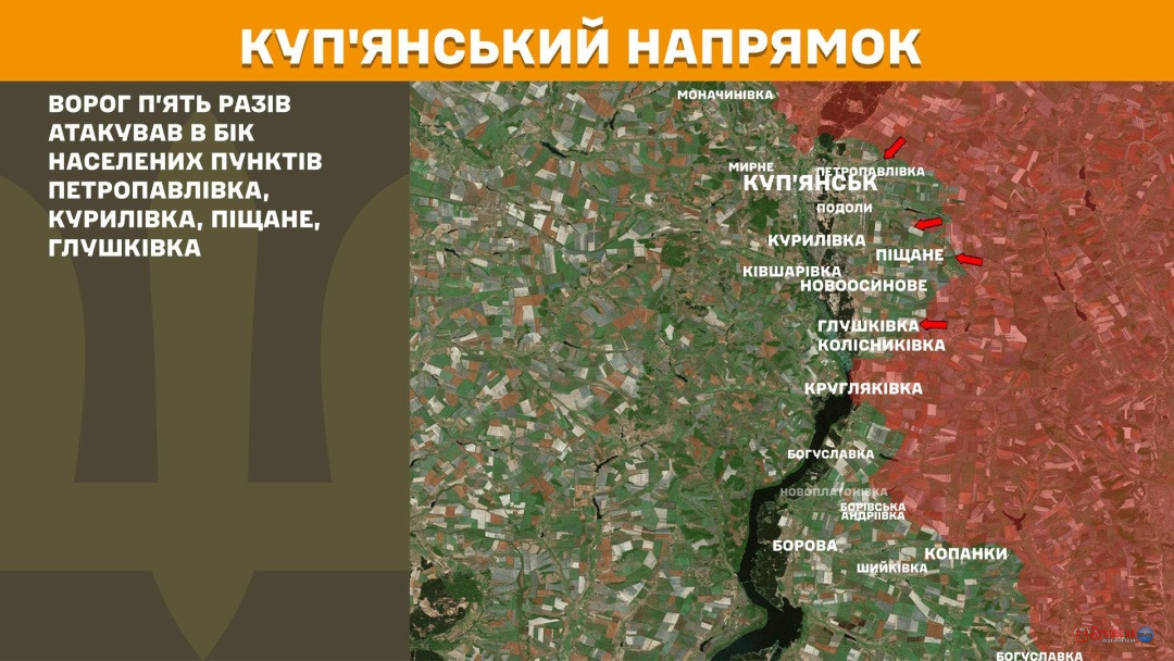 На Куп’янському напрямку війська РФ п’ять разів атакували в бік Петропавлівки, Курилівки, Піщаного, Глушківки.