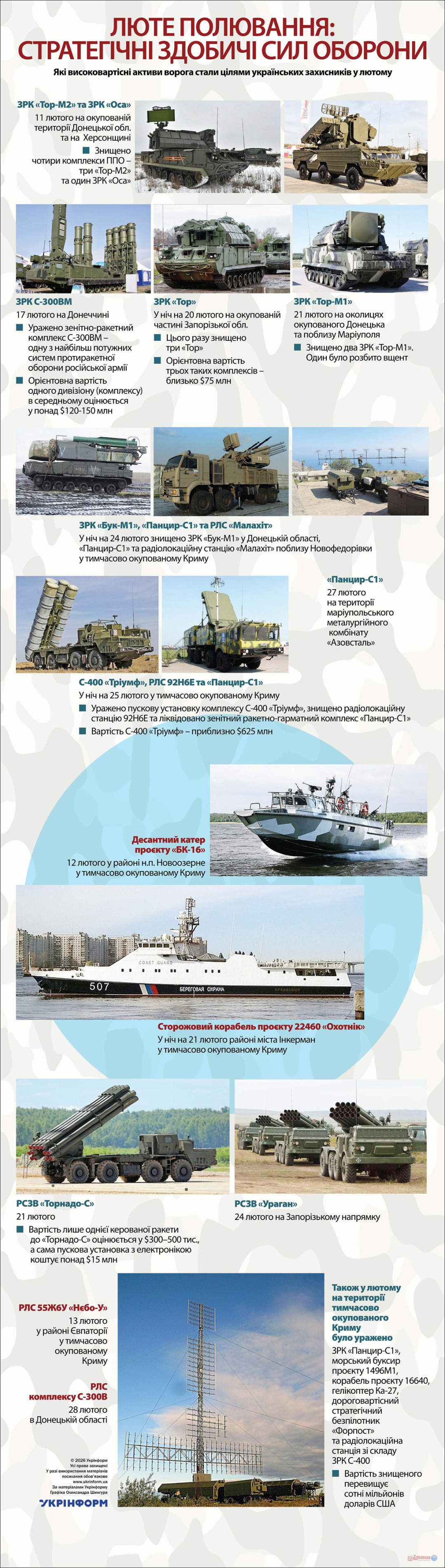 Які високовартісні активи ворога стали цілями українських захисників у лютому